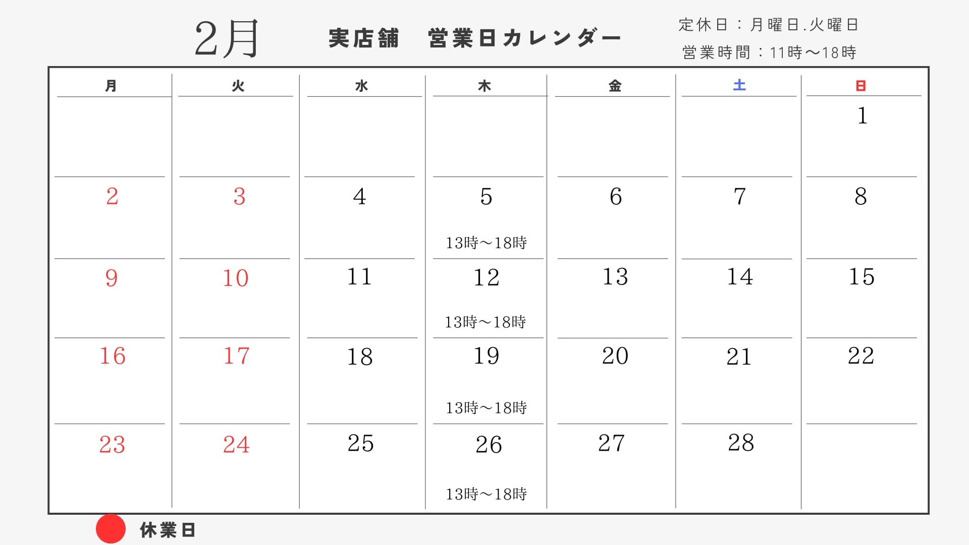 日曜日 11時~18時