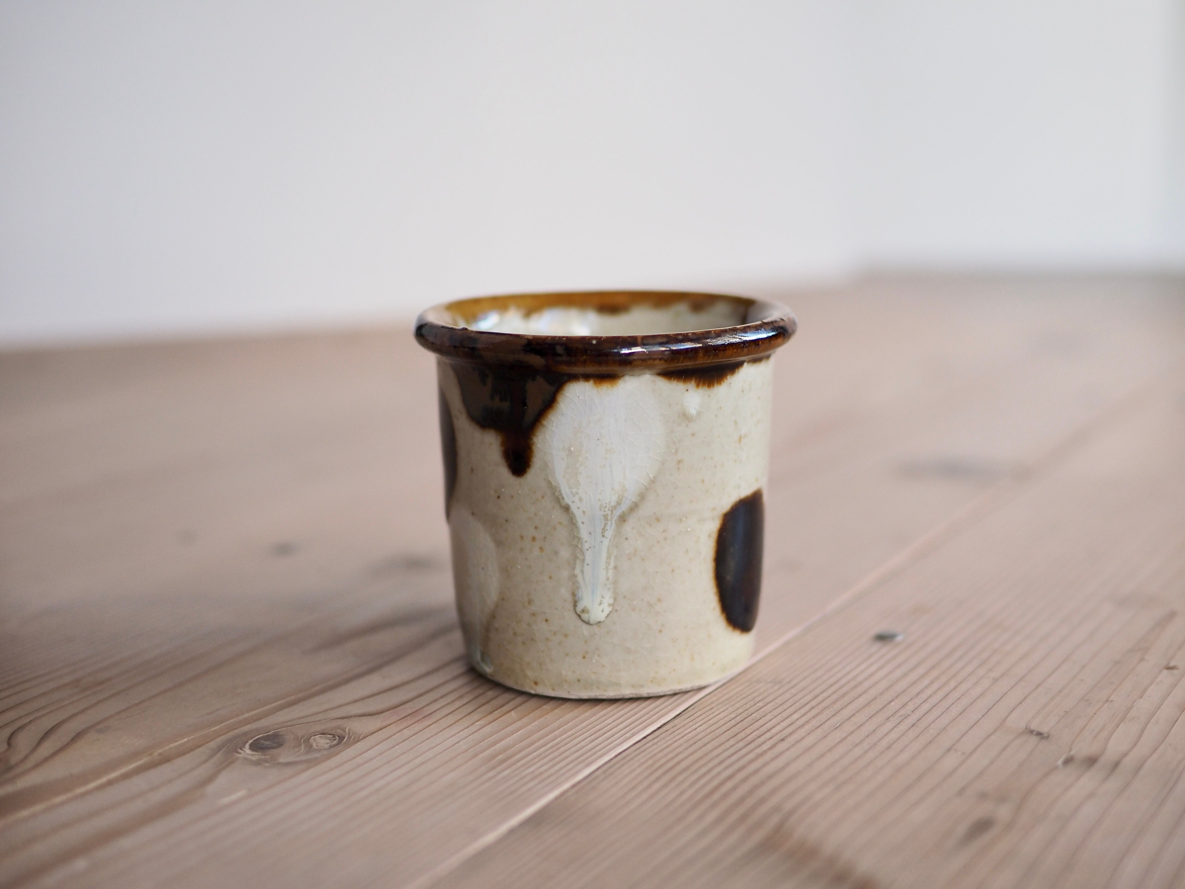 筒型でぽってりとした釉薬がかかったマグカップです。