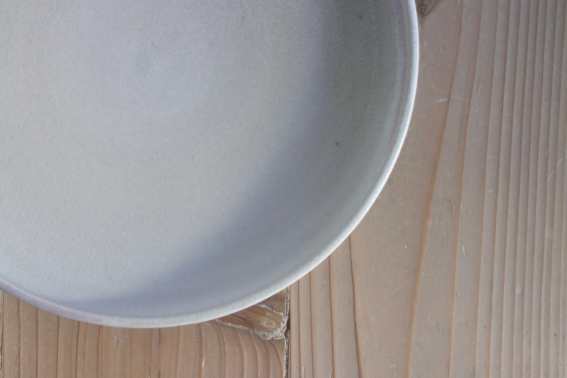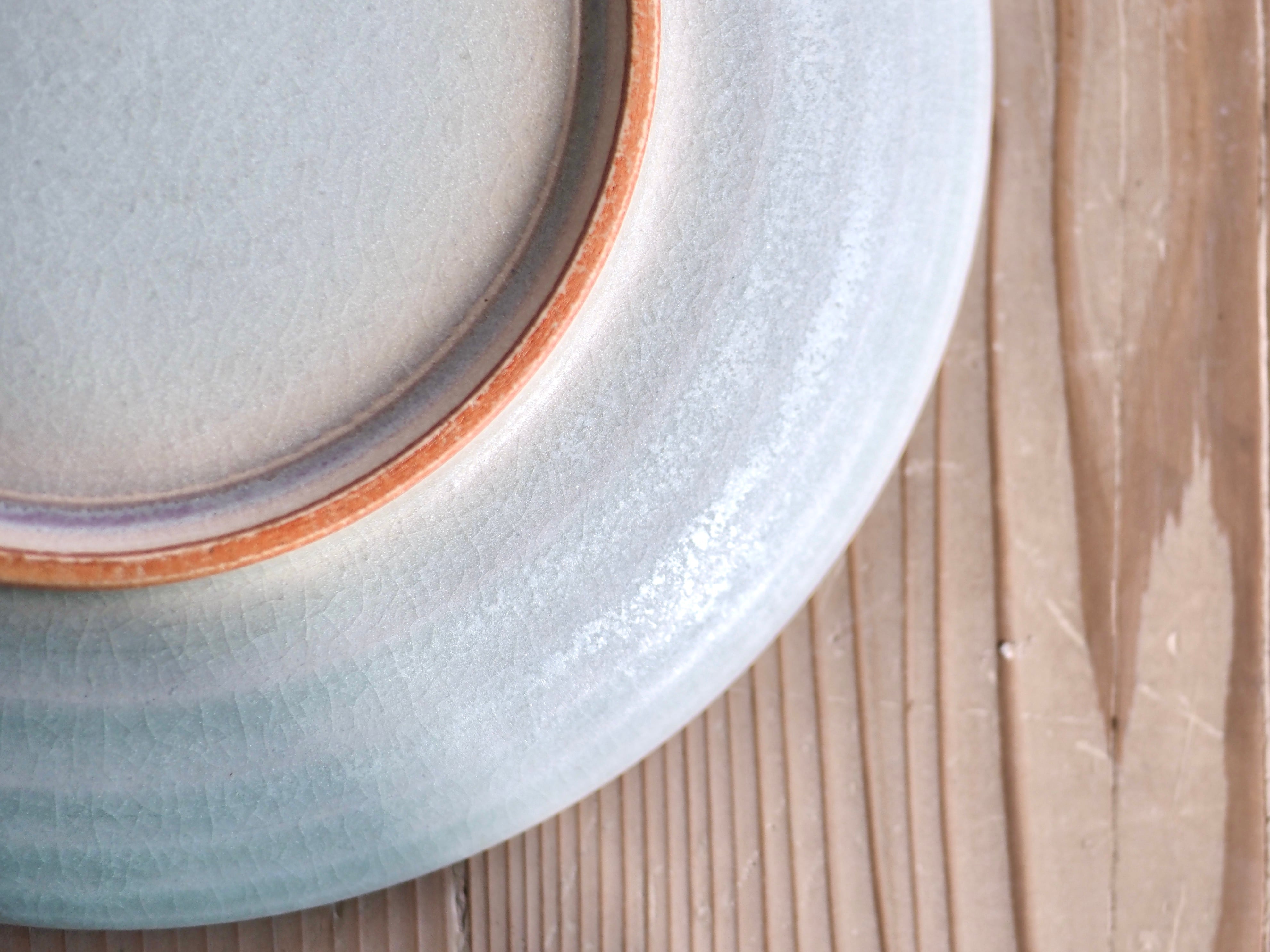 原料となる陶土や釉薬の特性上、表面に貫入(細かいヒビ状の模様)、小さな点(黒い点)、ピンホール(小さな穴)、石はぜ、釉薬の流下やムラなどが生じる場合があります。これらは製造工程で自然に発生する個体差であり、品質上の問題はございません。